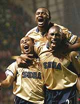 ![]() ... Barthez saves but can't stop Wiltord's follow-up |