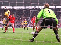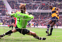 up a cross to Nwankwo Kanu lurking near the penalty spot. Duly the ball