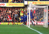 Martin Thorpe (The Guardian) This was an afternoon of such unbelievable excitement that the script could have been written specifically to impress the watching Fifa delegation who are assessing England's bid for the 2006 World Cup. If so, South Africa and Germany have no chance now. Genius was afoot as Arsenal, losing 2-0 to one of their main Premiership rivals with just 15 minutes left, staged a comeback which, four days after they had escaped, consigned Chelsea to Hell once more. The star of the show was Nwankwo Kanu, whose injury-time winner completed a fantastic hat-trick. A fixture computer with a perverse sense of pleasure had sandwiched this match between two equally vital Champions League games for both sides. But though each manager rested a key player - Dennis Bergkamp for Arsenal, Gianfranco Zola for Chelsea - the teams still managed to produce a classic, and Kanu a fairytale. |